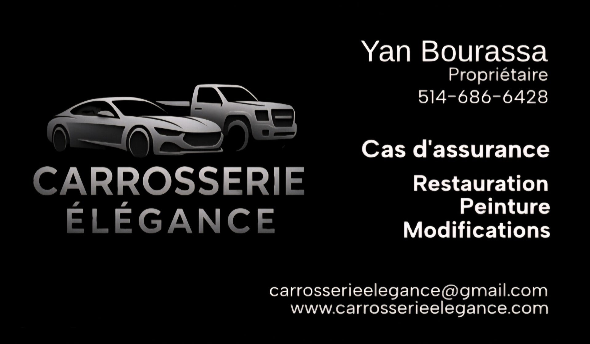 Carrosserie Élégance, située à Saint-Eustache, est dévouée à fournir des services de carrosserie et d'entretien automobile de premier ordre. Notre équipe de professionnels expérimentés est passionnée par la restauration et le maintien de l'apparence parfaite de votre véhicule. Nous comprenons l'importance de maintenir votre voiture en parfait état, non seulement pour son apparence, mais aussi pour sa sécurité et sa longévité. Depuis notre création, nous nous engageons à offrir des services personnalisés qui répondent aux besoins uniques de chaque client. Nos installations modernes et notre équipement de pointe garantissent que chaque service est effectué avec précision et soin. Que ce soit pour une petite retouche ou un entretien complet, Carrosserie Élégance est votre partenaire de confiance pour tout ce qui concerne l'esthétique et l'entretien automobile.